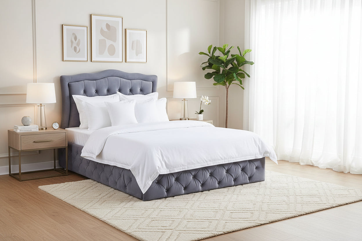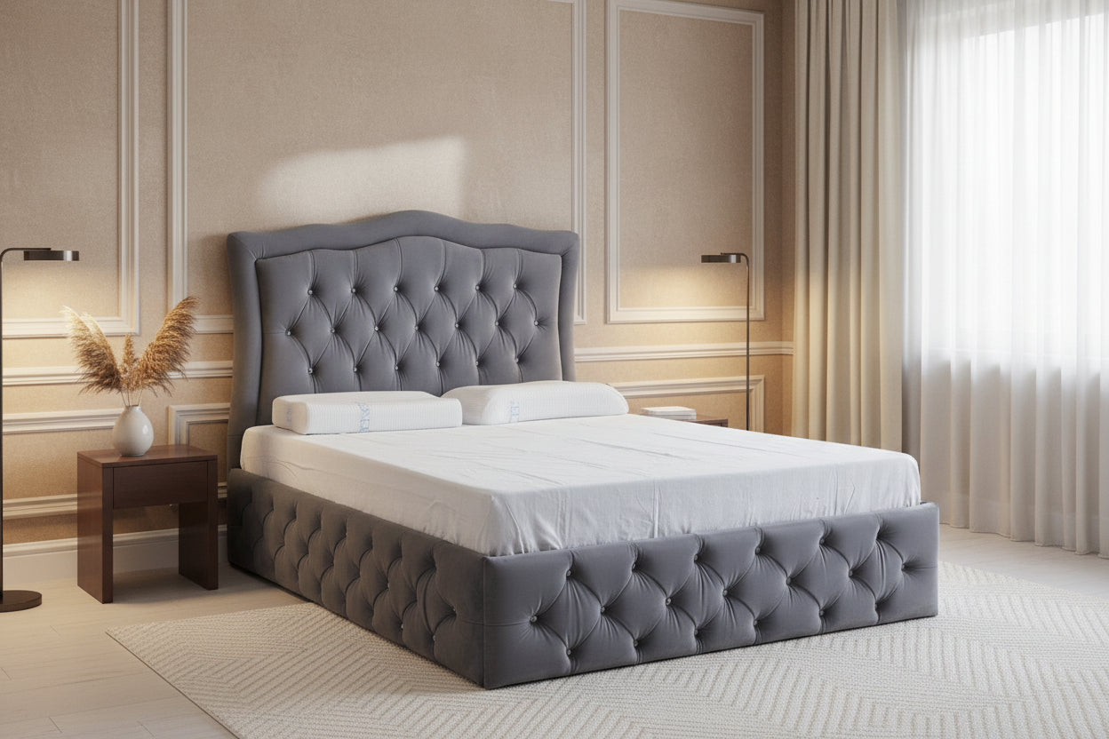 Découvrez le cadre de lit double Trend en velours gris 140×190 cm. Design élégant et confort assuré. Livraison rapide.
