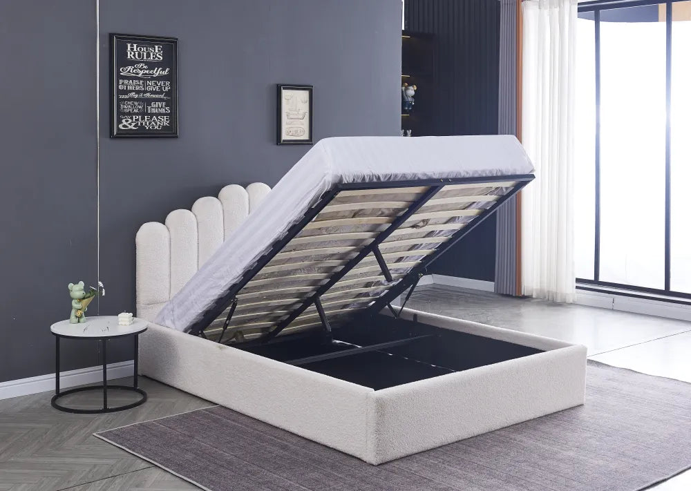 Lit Coffre Doha Tissu Blanc 160×200 cm 2 Places Sommier Intégré