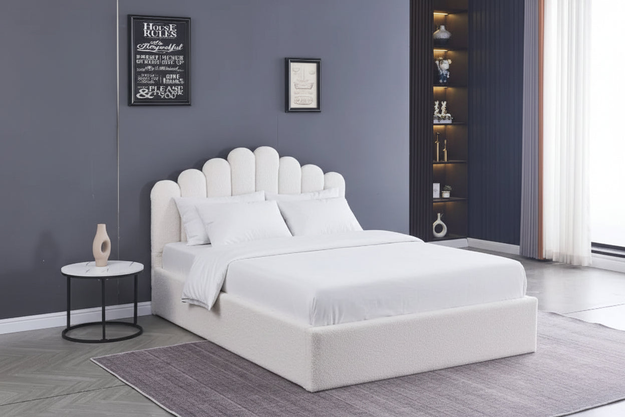 La tête de lit en forme de coquillage, apporte une touche d’originalité et de charme à votre pièce.