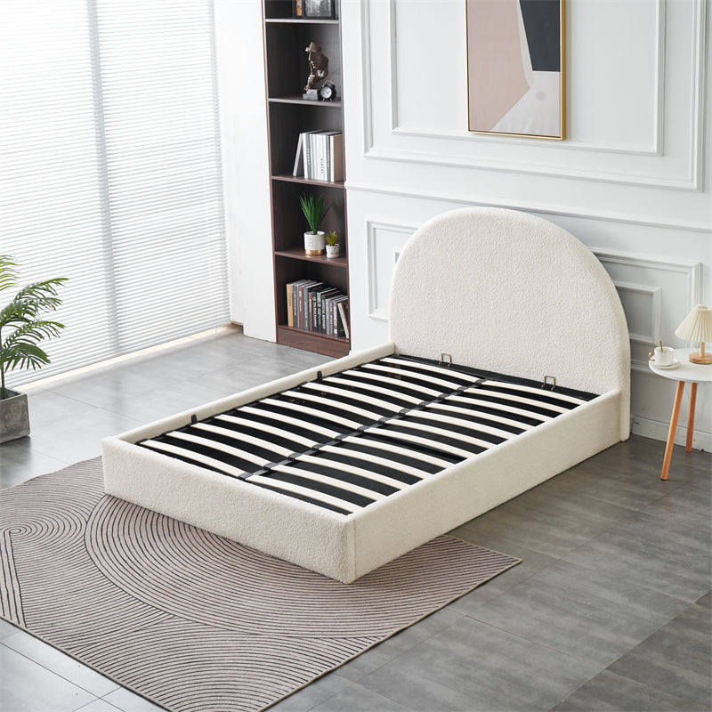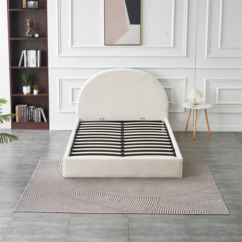 Collection : VALENTINAType : Lit double king size avec coffre de rangement intégréStructure : Bois massif et panneaux MDFRevêtement : Tissu doudou blanc – toucher peluche extra douxSommier : Inclus – à lattes, relevable avec vérins hydrauliquesColoris : BlancStyle : Cocooning, Moderne, ÉlégantUtilisation : Chambre adulte, suite parentaleMontage : Oui – notice incluseEntretien : Aspirateur embout textile ou chiffon douxParticularité : Grand coffre invisible, design capitonné vertical, idéal pour optimiser le rangement