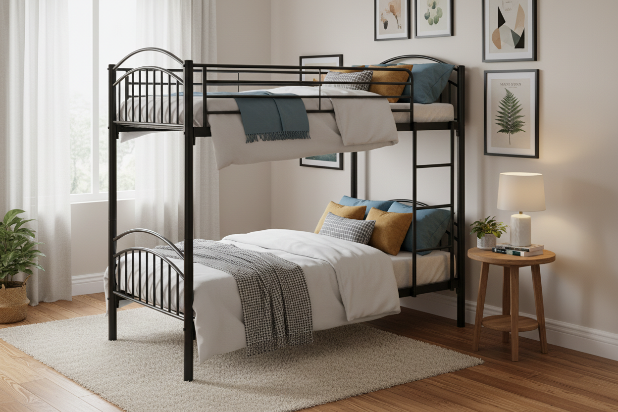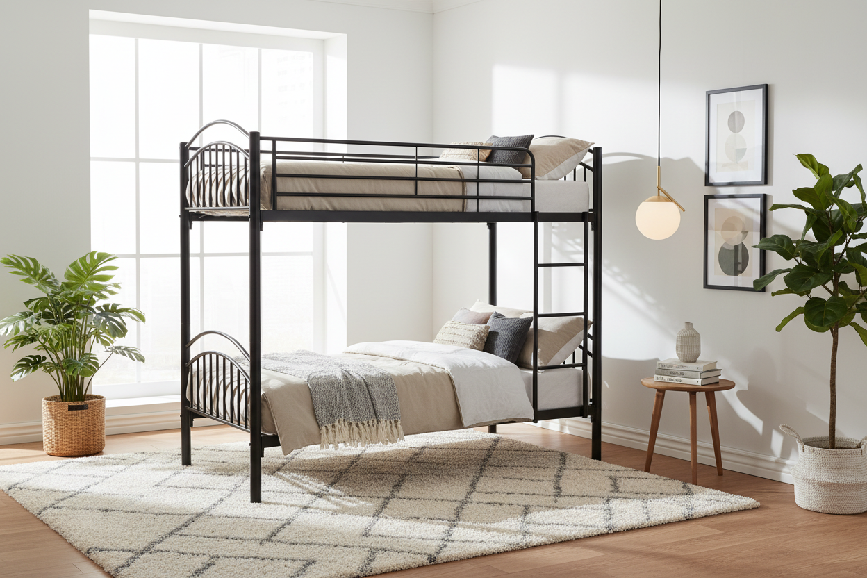 Le lit superposé séparable 90×190 cm en métal noir est conçu pour optimiser l’espace tout en offrant une grande flexibilité d’utilisation. Sa structure métallique assure stabilité et durabilité au quotidien. Modulable, il peut être utilisé en lit superposé ou séparé en deux lits simples indépendants selon les besoins. Il convient parfaitement aux chambres d’enfants, d’adolescents ou aux espaces partagés. Son design sobre s’intègre facilement dans différents styles d’intérieur.