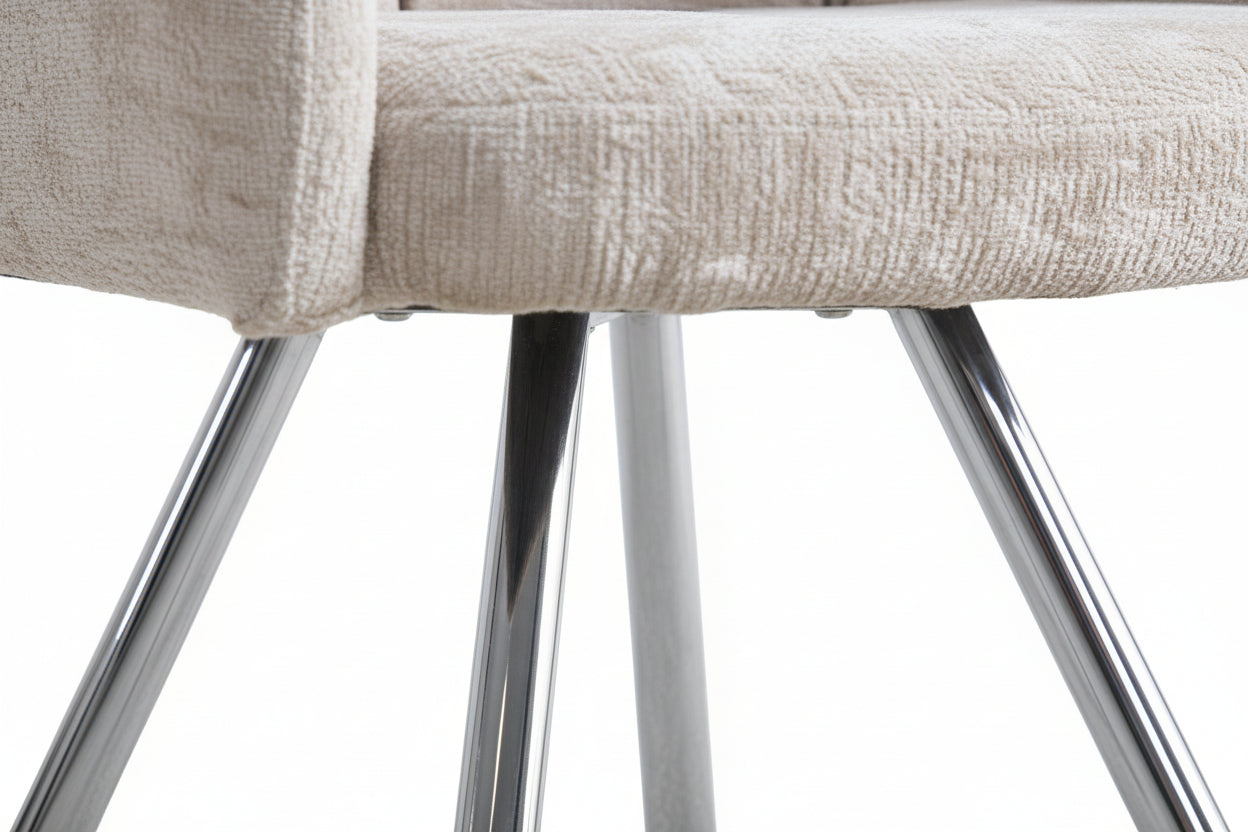 Sublimez votre intérieur avec le lot de 2 chaises ELISA en velours moka et pieds finition chrome, pensé pour allier élégance, confort et praticité au quotidien. Leur assise moelleuse et leur dossier confortable accompagnent parfaitement les repas en famille comme les moments conviviaux prolongés. Le revêtement en velours moka apporte une teinte profonde et chaleureuse, idéale pour créer une ambiance cosy et raffinée, tout en restant facile à associer à des matières comme le bois, la céramique ou le métal. Le piètement en métal finition chrome ajoute une note moderne et lumineuse, tout en garantissant une excellente stabilité et une grande durabilité. Grâce à leurs dimensions compactes, les chaises ELISA s’intègrent facilement autour d’une table de salle à manger ou dans une cuisine, même dans les espaces plus réduits, sans compromis sur le confort. Montage simple et entretien facile avec un chiffon doux non abrasif.