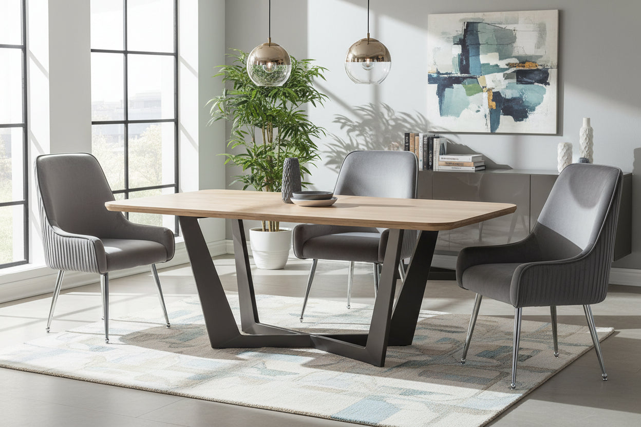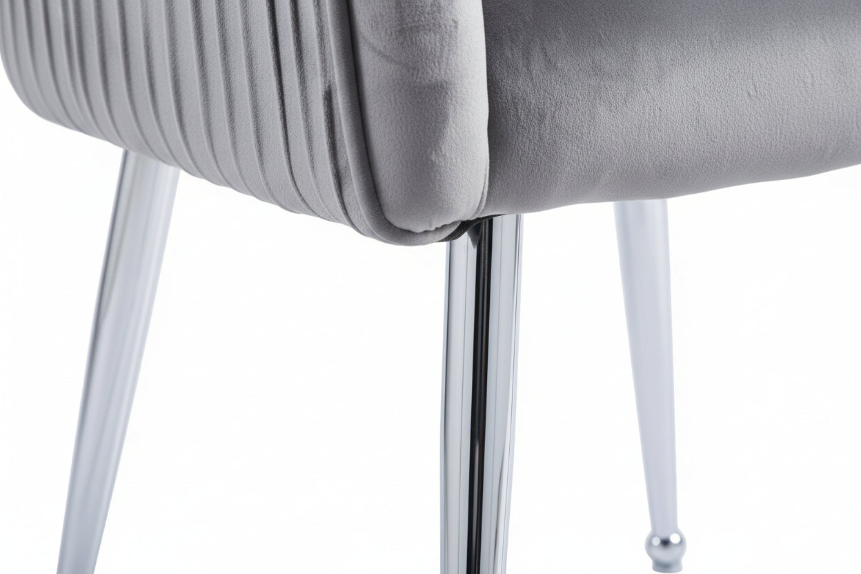 Sublimez votre intérieur avec le lot de 2 chaises LUXURY en velours anthracite et piètement chrome, parfait pour créer une ambiance moderne et raffinée. Leur dossier haut apporte un excellent maintien, tandis que l’assise généreusement rembourrée assure un confort exceptionnel au quotidien, que ce soit autour d’une table de salle à manger, dans un coin maquillage ou en chaise de bureau chic. Le revêtement en velours doux anthracite apporte une teinte profonde et élégante, facile à associer à du bois, du marbre ou des tons neutres, tout en conservant une allure chic et intemporelle. La structure en bois associée à une mousse de densité confortable garantit une assise agréable, et le piètement en métal finition chrome brillant ajoute une note lumineuse et contemporaine, tout en assurant stabilité et durabilité. Les pieds sont à fixer facilement, et l’entretien se fait simplement avec un chiffon doux ou une brosse textile.