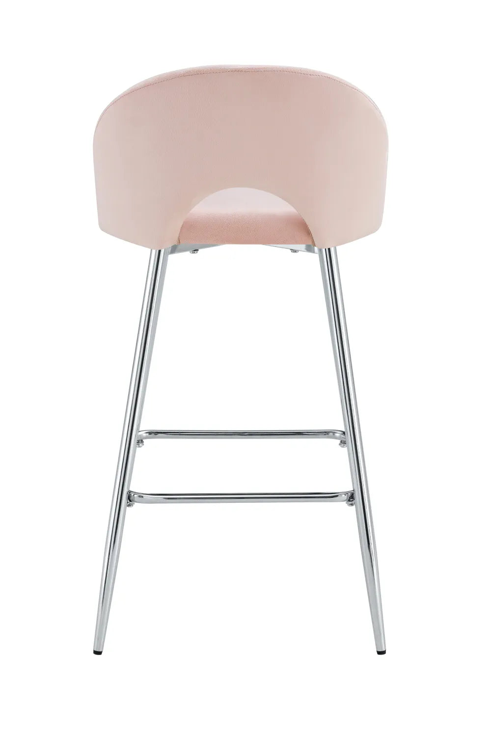 Lot 2 Tabourets de Bar Teddy Velours Rose Pieds Chrome 47x36x98cm