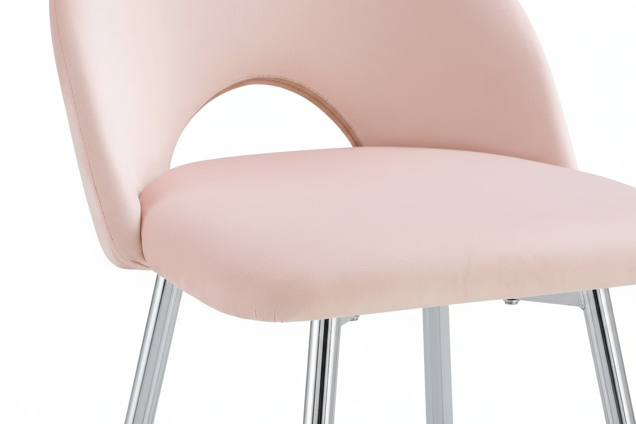 Sublimez votre espace avec le lot de 2 tabourets de bar TEDDY en velours rose et pied chrome, conçu pour allier élégance, confort et praticité. Leur design moderne se distingue par une structure à la finition chrome brillante, qui apporte une note contemporaine et raffinée à votre cuisine, salon ou
