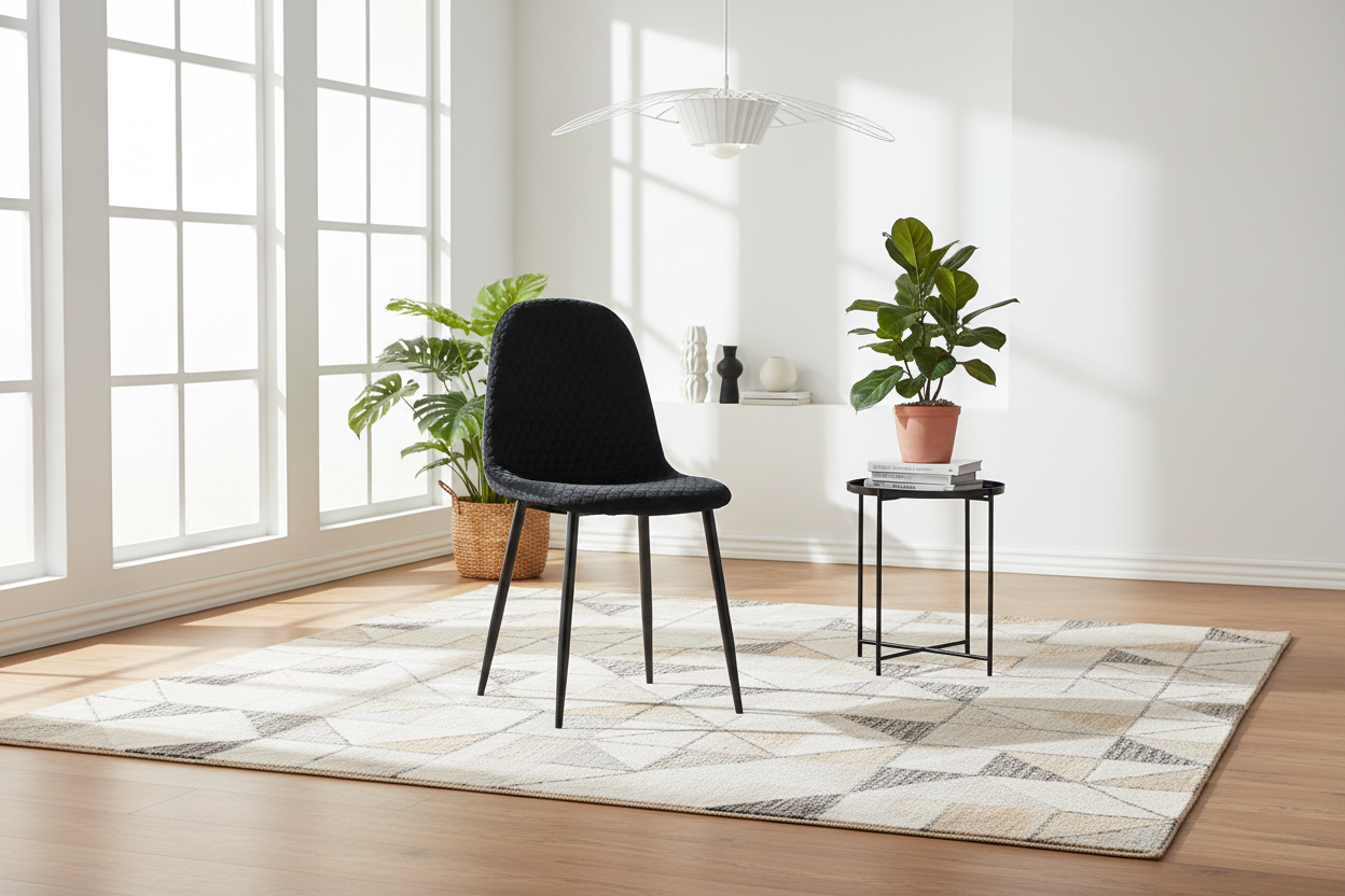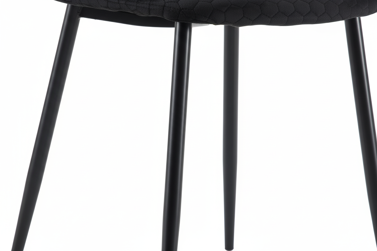 Apportez une touche de modernité à votre intérieur avec le lot de 4 chaises scandinaves ALVEOLE en velours noir et pieds métal noir. Leur silhouette minimaliste s’inspire du style nordique et s’intègre facilement dans une salle à manger contemporaine, un bureau ou un coin repas. L’assise et le dossier en velours sont sublimés par un motif alvéolé hexagonal qui ajoute du relief et un rendu décoratif premium, tout en conservant une sensation douce au toucher. Le piétement en acier noir assure une stabilité irréprochable et une excellente durabilité au quotidien, pour un usage confortable jour après jour. Grâce à son coloris noir intemporel, ce modèle apporte du caractère et une élégance naturelle à votre décoration, tout en restant simple à assortir.