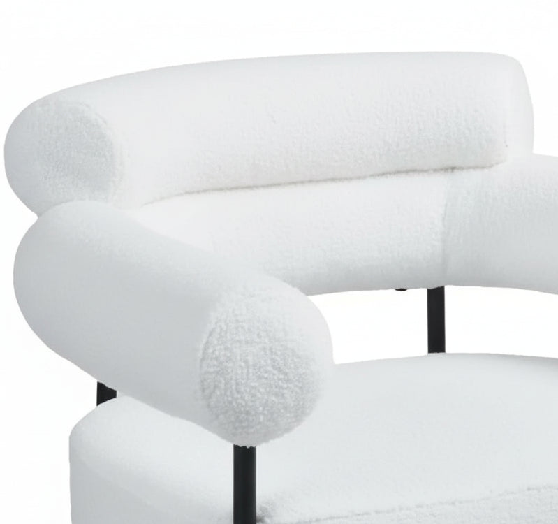 Misez sur le confort et l’élégance avec la chaise BULLE en tissu doux et pieds métal noir, idéale pour une décoration contemporaine et chaleureuse. Son dossier arrondi avec accoudoirs intégrés assure un maintien confortable, tandis que sa structure noire mate offre une allure sobre et moderne. Disponible en beige, doudou (effet peluche) et serge gris (effet tissu texturé), elle s’intègre parfaitement à une salle à manger cosy, un coin salon ou une coiffeuse raffinée.