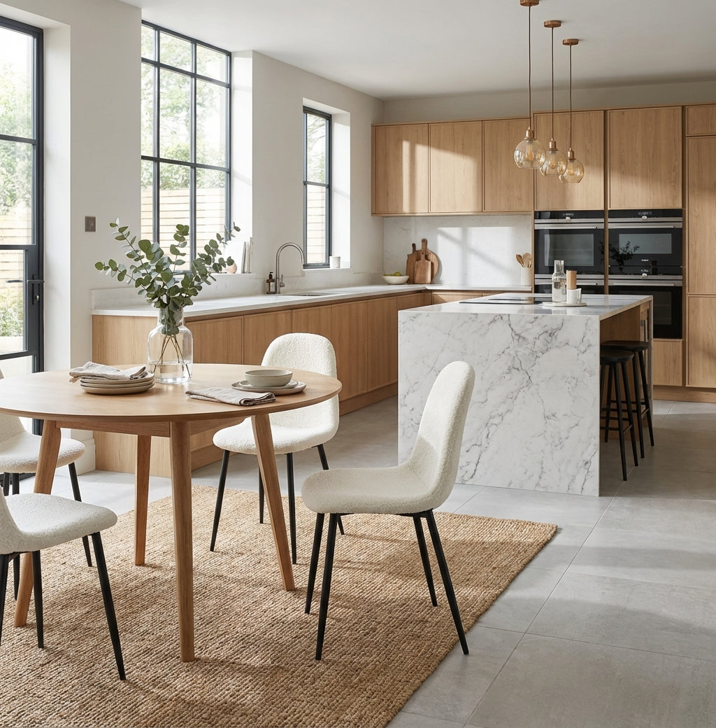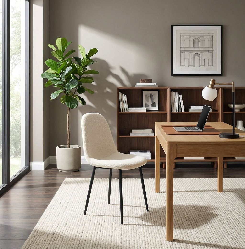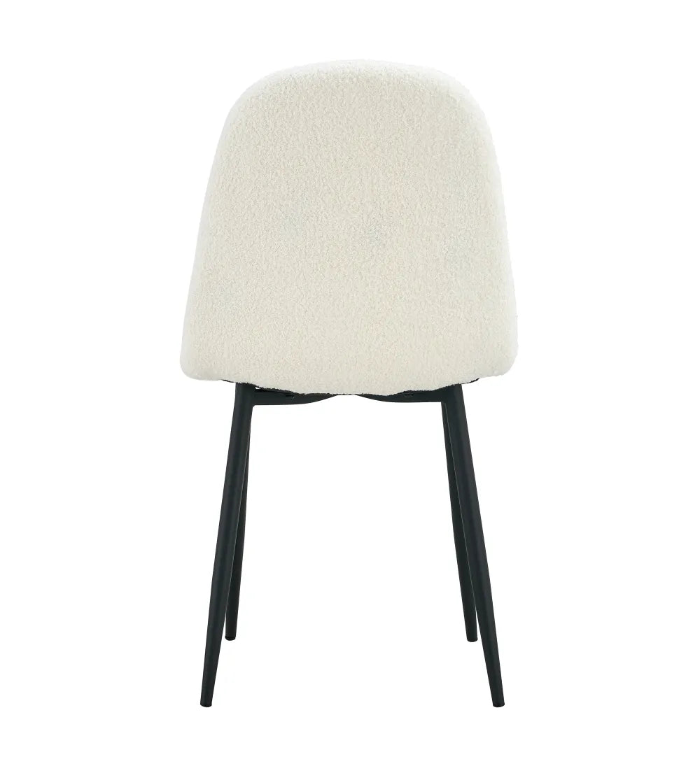 Ce lot de 4 chaises scandinaves s’intègre facilement dans une salle à manger, une cuisine ou un espace de travail. Leur revêtement effet doudou associé à une assise en mousse polyester molletonnée offre un accueil confortable au quotidien. Le dossier fixe permet un bon maintien lors des repas ou des moments prolongés assis. Le piétement en métal noir assure stabilité et résistance pour un usage régulier. Grâce à leur format compact, elles se placent aisément autour d’une table tout en conservant une circulation fluide dans la pièce.