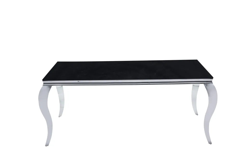 Table à Manger Baroque Verre Noir Pieds Chrome 180×90 cm