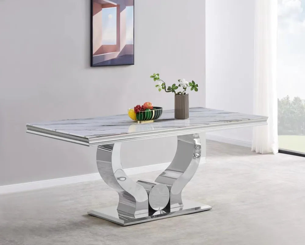 Sublimez votre espace repas avec la Table à Manger TROFY, une fusion parfaite de design glamour et de fonctionnalité. Parfaite pour les repas quotidiens ou les dîners festifs, cette table accueille 6 à 8 personnes avec aisance.
