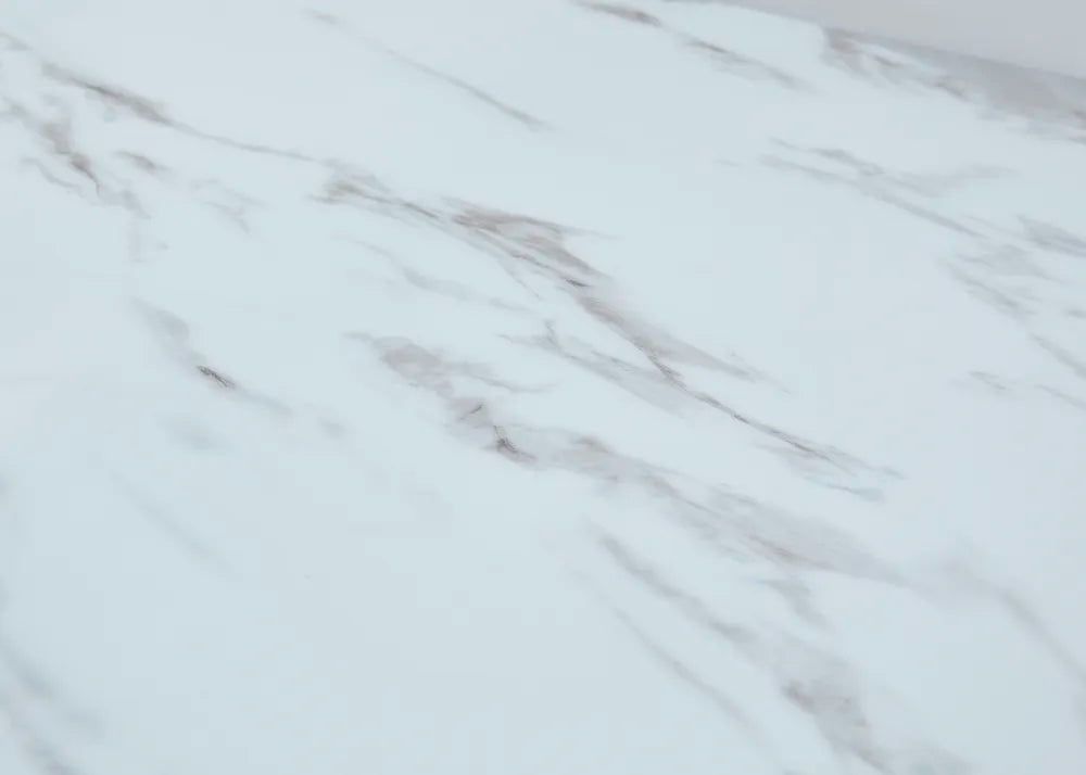 Craquez pour la table à manger Trofy en verre marbré blanc 150×90 cm. Pieds métal chrome. Design moderne. Livraison rapide.