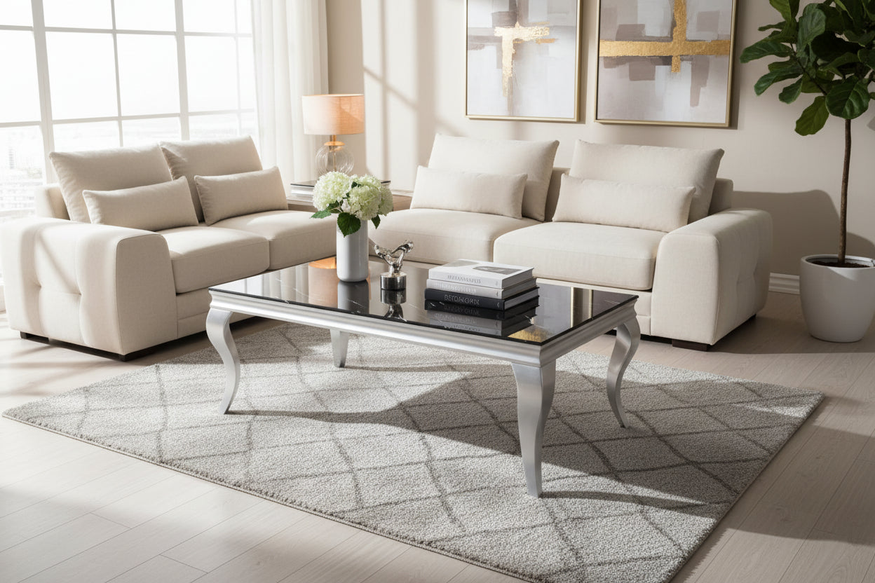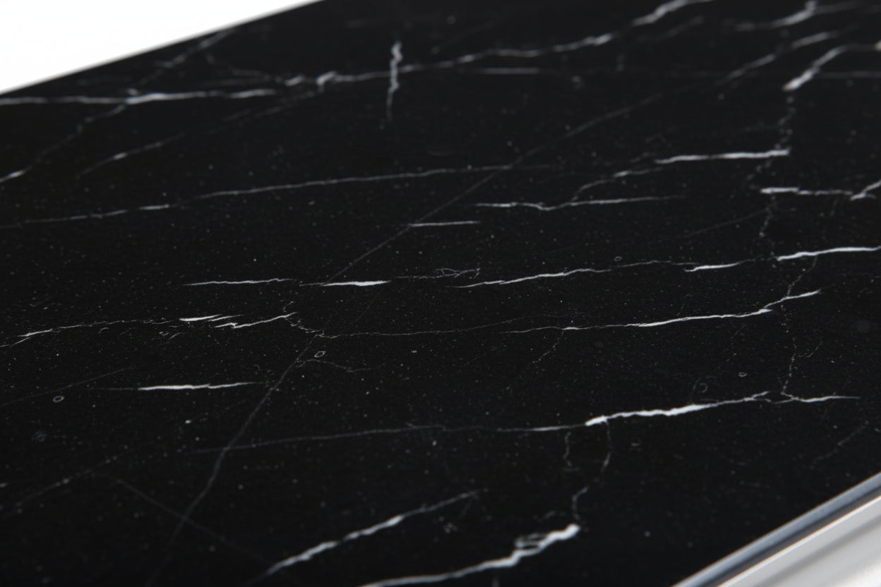Soyez le premier à laisser votre avis sur “Table Basse Baroque Rectangle Verre Trempé Marbré Noir Pieds Chrome 120x60x45 cm”