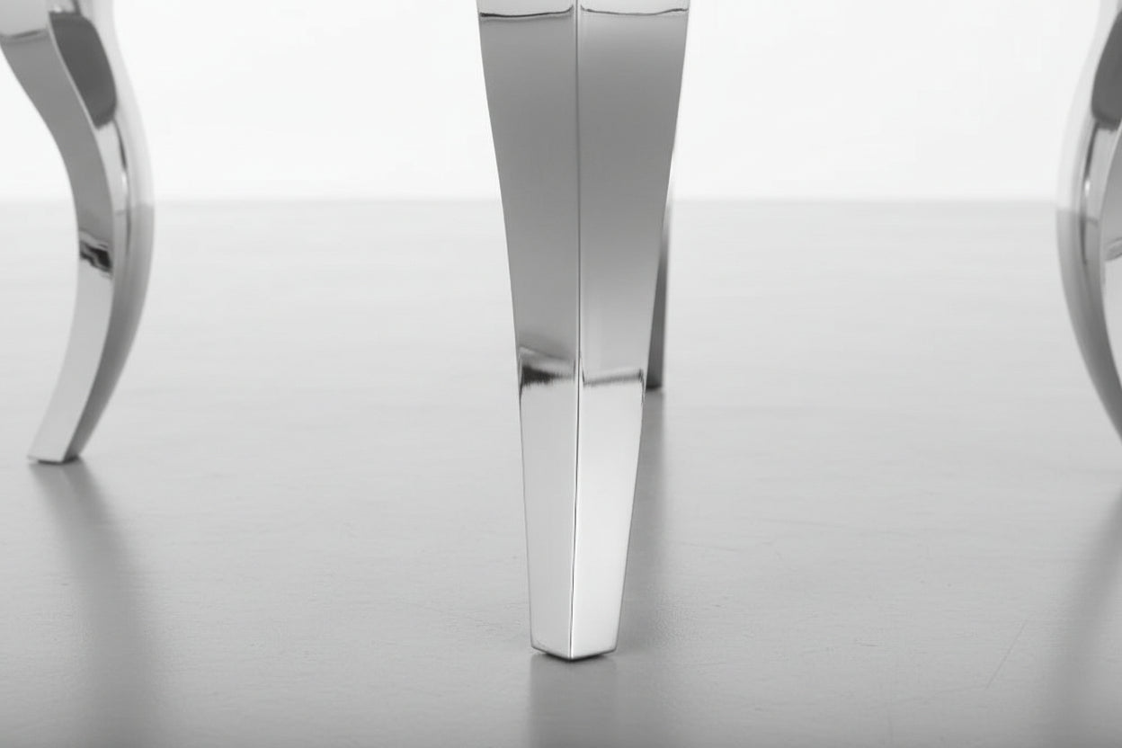 La table basse ronde BAROQUE Chrome marie l’élégance baroque et la modernité des finitions brillantes. Sa structure en chrome apporte une touche lumineuse et premium, tandis que son plateau en verre trempé blanc illumine votre intérieur avec un rendu chic et intemporel, parfait pour un salon élégant.