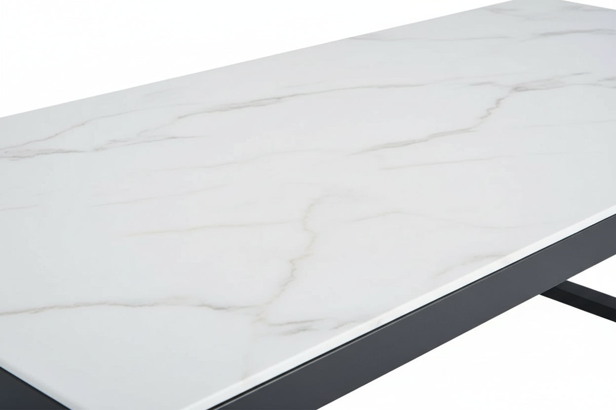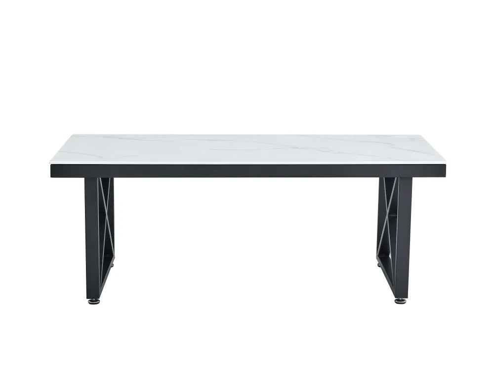 Table Basse Levanto Verre Trempé Marbré Blanc Métal Noir 120x60x45 cm