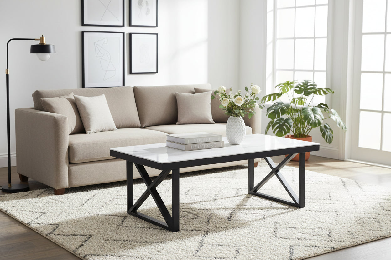 Découvrez la table basse LEVANTO, une pièce qui associe élégance moderne et robustesse au quotidien. Sa structure en métal noir donne une allure contemporaine et affirmée, tandis que son plateau en verre trempé effet marbré blanc illumine votre intérieur avec un rendu haut de gamme et intemporel.