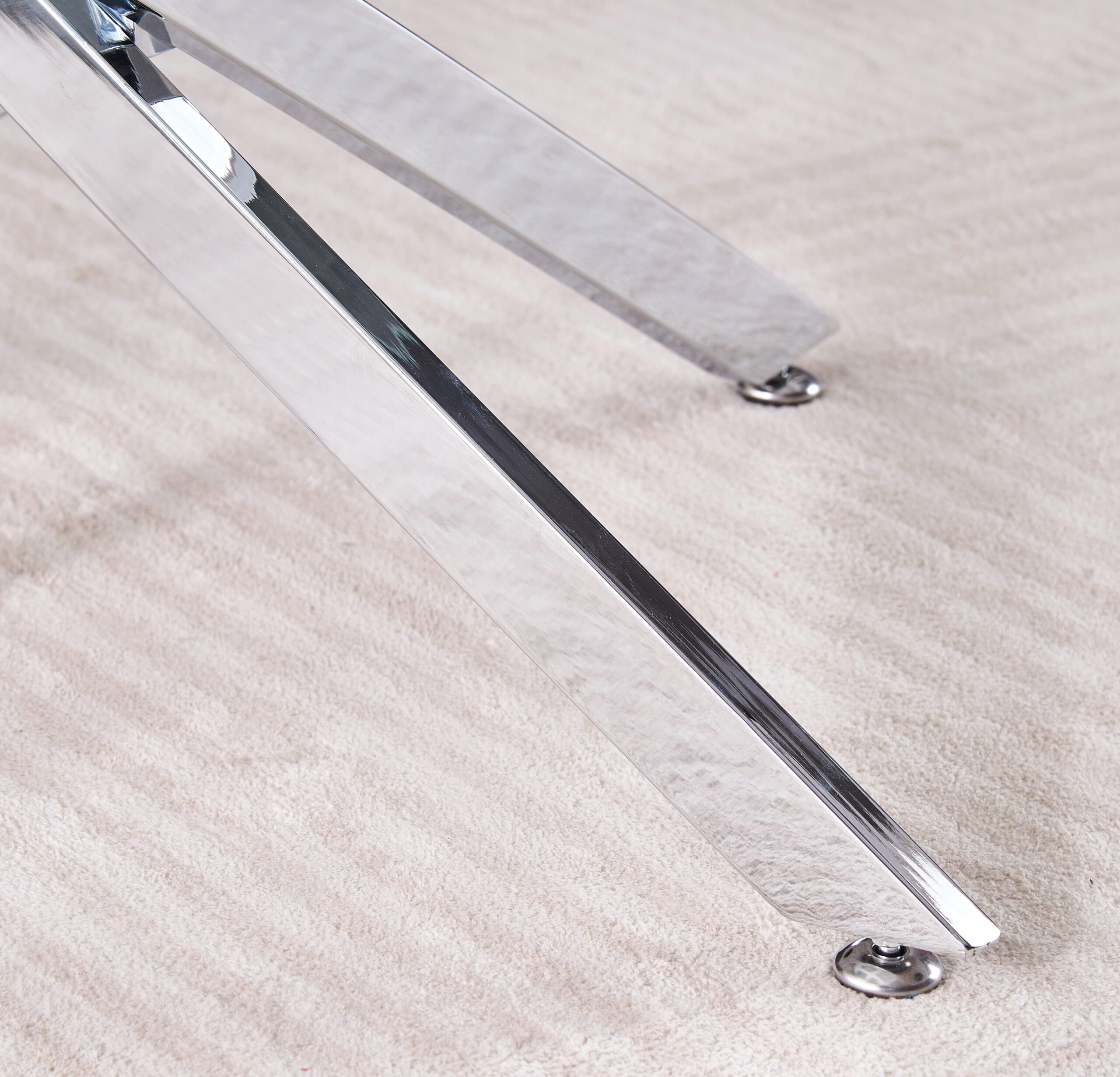 La structure en métal argenté, à la fois solide et stylée, assure une grande stabilité tout en ajoutant une touche contemporaine. Avec ses lignes épurées et sa finition brillante, elle complète le design moderne de la table en apportant une sensation de luxe subtil. Ce mélange de matériaux confère à cette table une esthétique chic et minimaliste, adaptable à différents types de décorations, des plus classiques aux plus contemporaines.