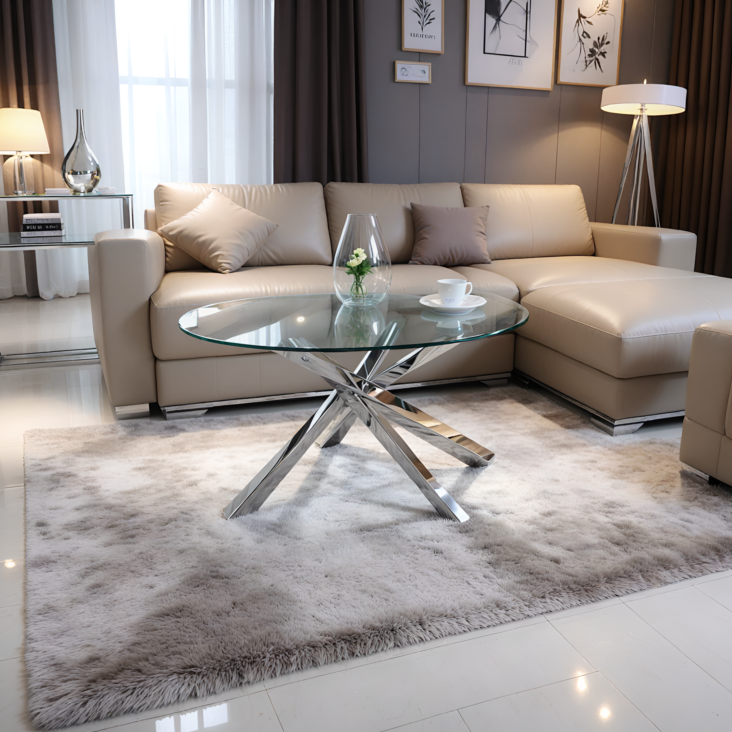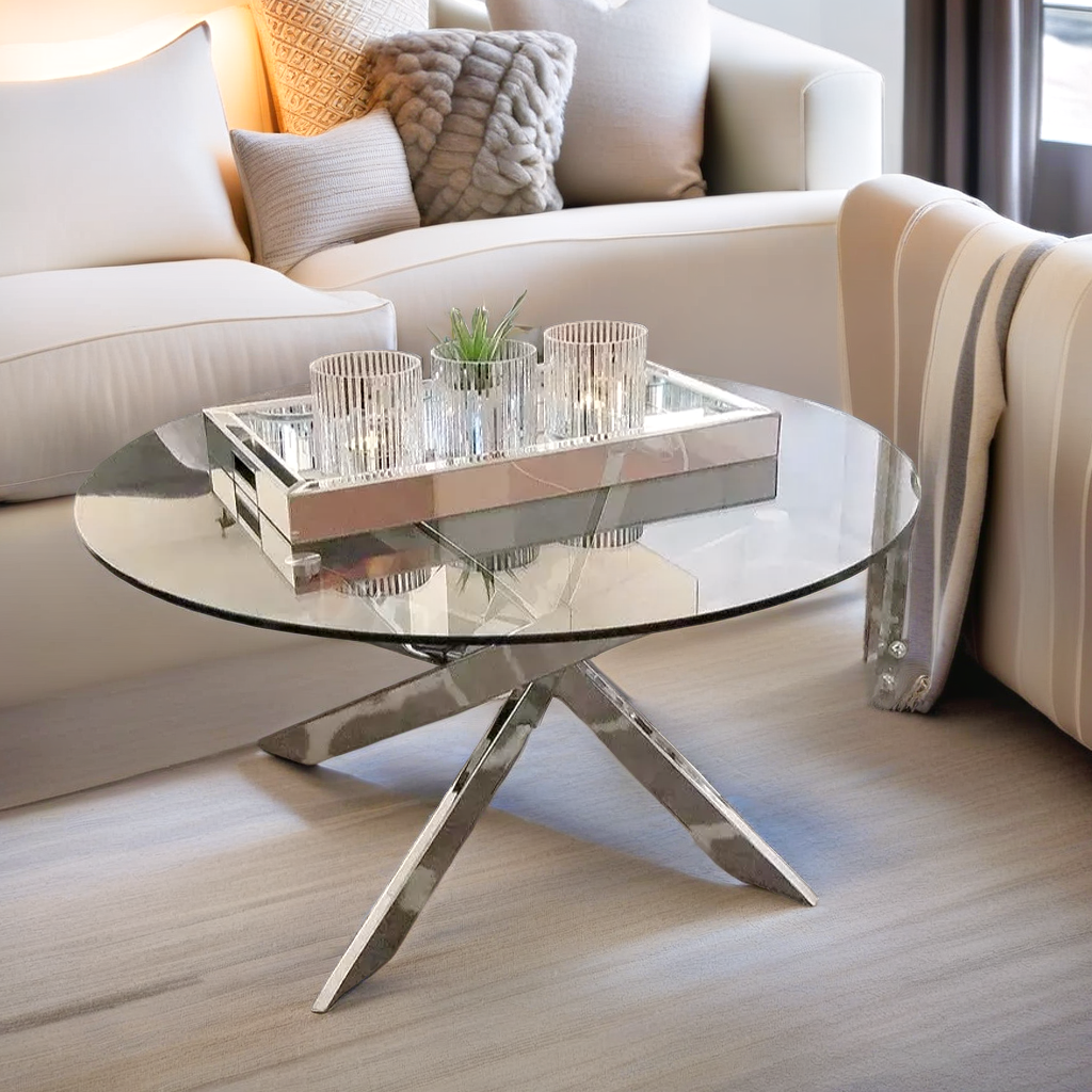 Table Basse Ronde en Verre avec Structure Argentée : Un Design Moderne et Élégant pour Votre Salon