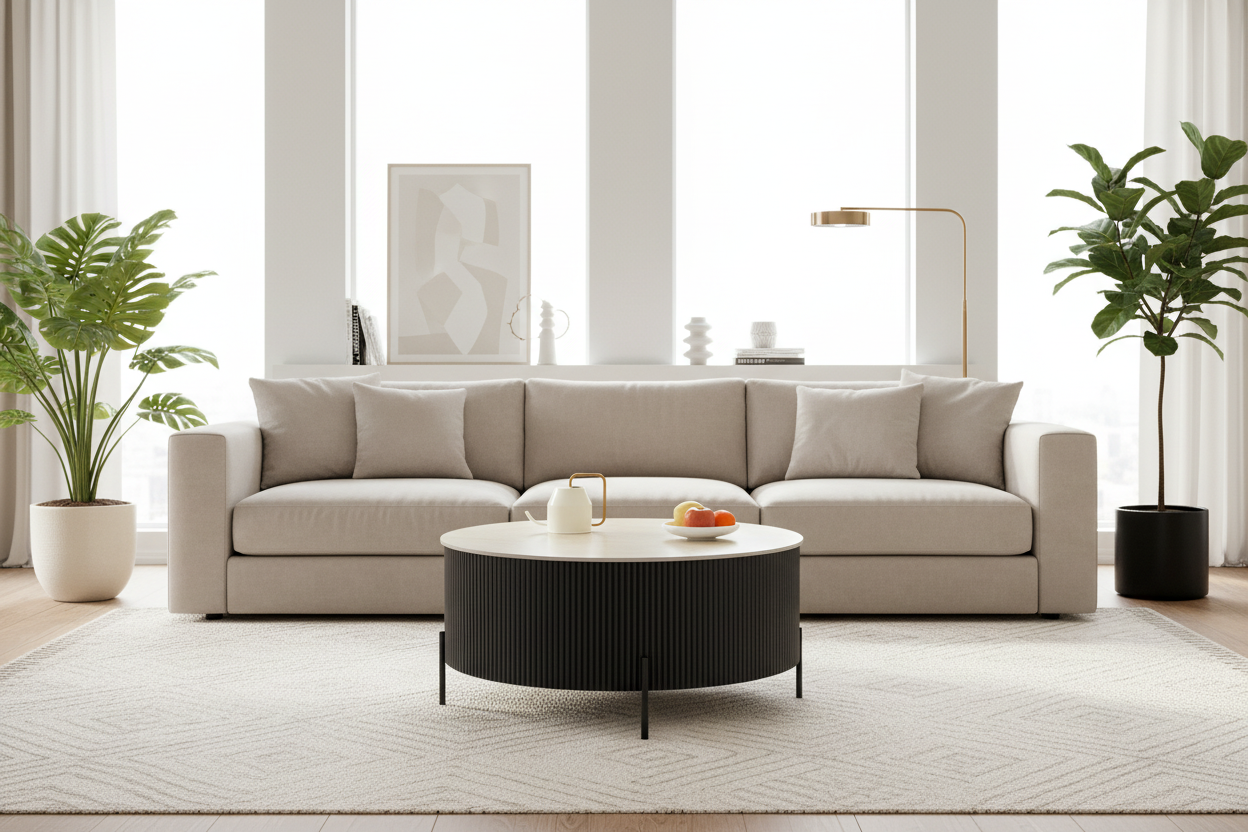 Avec son grand diamètre, RUBY accompagne parfaitement un canapé spacieux et devient une vraie table centrale : idéale pour accueillir vos objets déco, livres, bougies ou plateaux apéritifs, tout en structurant l’espace. La céramique est particulièrement appréciée pour son entretien simple : un chiffon doux suffit pour conserver l’aspect du plateau et sa finition soignée. Si vous recherchez une table basse ronde Ø90 noire, au style effet travertin et à l’allure haut de gamme, la RUBY est un choix aussi esthétique que pratique.