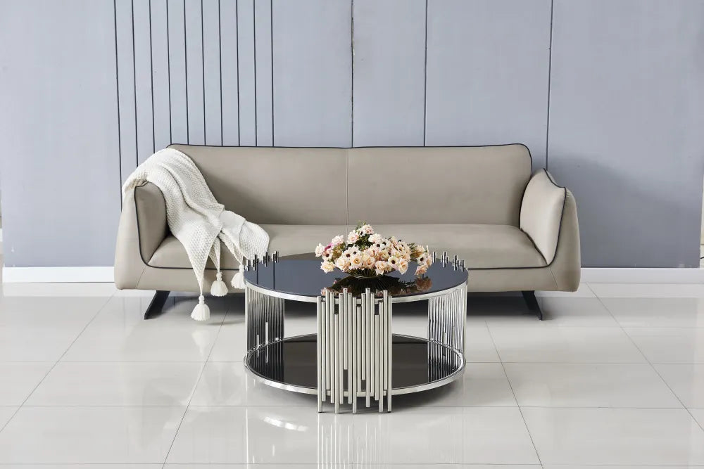 La table basse STICK est une table basse déforme ronde avec des plateaux en verre trempé robuste design grâce à ses angles en formes géométriques tendances.
