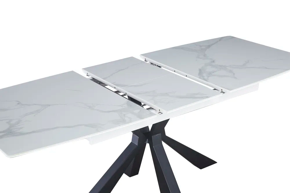 Choisissez la table extensible Bianca en métal noir et céramique blanc. Design élégant et moderne. Livraison rapide.